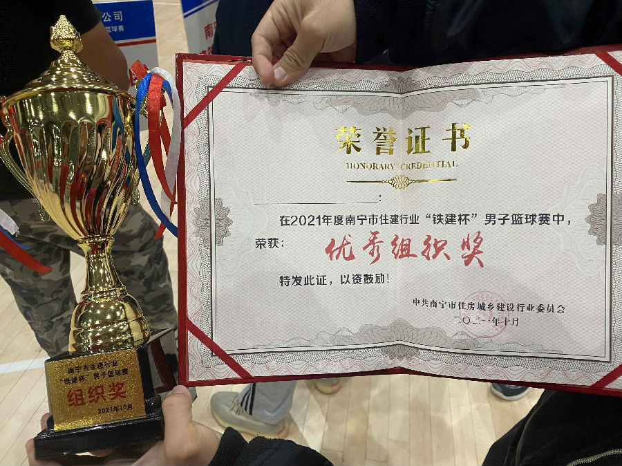 為進(jìn)一步提高黨員群眾的身體素質(zhì),豐富黨員群眾的體育生活,增強(qiáng)黨組織的凝聚力和戰(zhàn)斗力,2021年10月19日,中共南寧品正建設(shè)咨詢有限責(zé)任公司支部委員會(huì)、南寧品正建設(shè)咨詢有限責(zé)任公司籃球隊(duì)參加了中共南寧市住房城鄉(xiāng)建設(shè)行業(yè)委員會(huì)舉辦的“鐵建杯”男子籃球比賽,經(jīng)過(guò)拼搏,獲得第四名,并榮獲了“優(yōu)秀組織獎(jiǎng)”稱號(hào)。