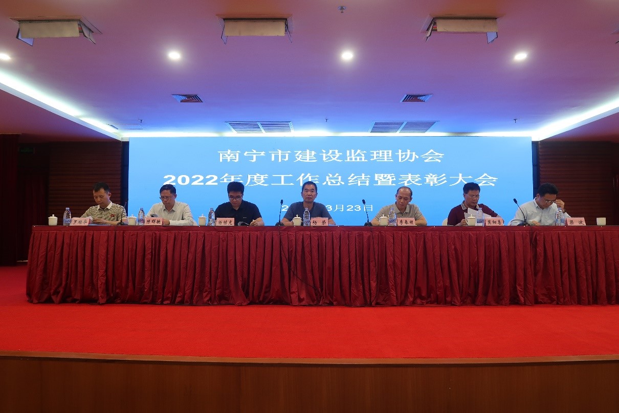 2023年3月23日,南寧市建設(shè)監(jiān)理協(xié)會(huì)在南寧市桃源飯店舉行2022年度南寧市建設(shè)監(jiān)理協(xié)會(huì)工作總結(jié)暨表彰大會(huì),南寧市住房和城鄉(xiāng)局房屋建筑質(zhì)量安全監(jiān)管科副科長楊繼龍、南寧市民政局社會(huì)組織管理科科長、四級(jí)調(diào)研員李春明、廣西建設(shè)監(jiān)理協(xié)會(huì)會(huì)長陳群毓等領(lǐng)導(dǎo)到會(huì)指導(dǎo)并講話。南寧市建設(shè)監(jiān)理協(xié)會(huì)會(huì)員單位參加會(huì)議。