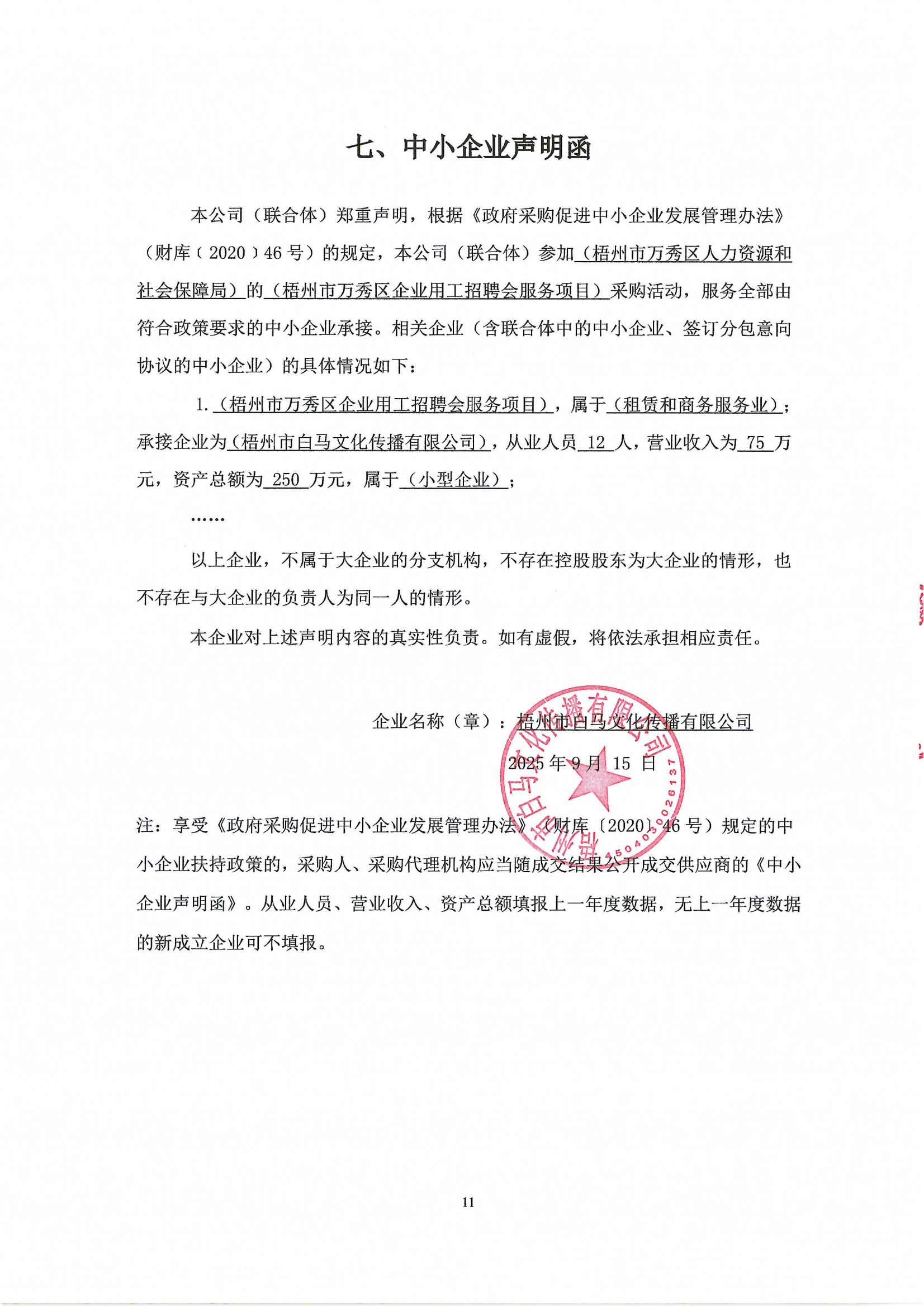 二、項(xiàng)目名稱:梧州市萬秀區(qū)企業(yè)用工招聘會服務(wù)項(xiàng)目