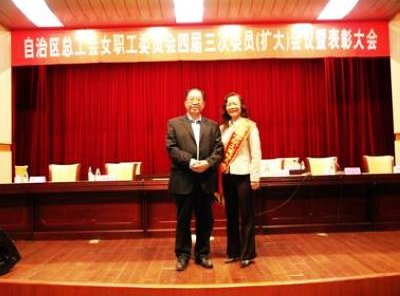 4月8日,在自治區(qū)總工會(huì)女職工委員會(huì)四屆三次委員(擴(kuò)大)會(huì)議暨表彰大會(huì)上,我公司總監(jiān)理工程師“南寧市五一巾幗標(biāo)兵”、“全國(guó)建設(shè)系統(tǒng)勞動(dòng)模范”獲得者黃燕玲同志再獲“全國(guó)女職工建功立業(yè)標(biāo)兵”光榮稱號(hào)。
