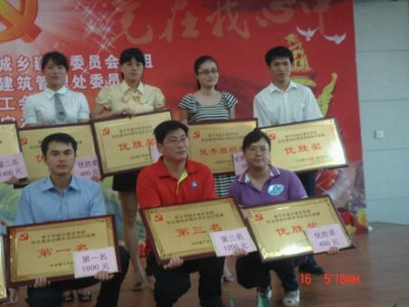 根據(jù)市城鄉(xiāng)建委有關(guān)文件精神,南寧品正黨支部高度重視,于“七一”前夕,精心組織開(kāi)展豐富多彩的活動(dòng)慶祝建黨90周年,取得較好成效。一是組織員工參加市紀(jì)委慶祝建黨90周年暨“南寧清風(fēng)”反腐倡廉書(shū)畫(huà)攝影作品征稿活動(dòng),公司黨支部共報(bào)送一幅書(shū)法,8幅照片,作品以慶祝建黨90周年展黨的輝煌成就,頌清風(fēng)正氣揚(yáng)南寧發(fā)展成果為主題。二是組織10名員工參加市城鄉(xiāng)建委系統(tǒng)合唱隊(duì),隊(duì)員們遵守紀(jì)律,認(rèn)真排練。6月13日,市城鄉(xiāng)建委參加市直機(jī)關(guān)慶祝建黨90周年“綠城紅歌獻(xiàn)給黨”合唱比賽,獲三等獎(jiǎng)。三是組織選派李智、陳倩、黃綿全三名員工參加市城鄉(xiāng)建委系統(tǒng)慶祝建黨90周年黨的知識(shí)競(jìng)賽,獲預(yù)賽第一名,決賽優(yōu)勝獎(jiǎng)和優(yōu)秀組織獎(jiǎng)。四是,南寧品正黨支部與市建設(shè)建筑管理監(jiān)察支隊(duì)黨支部于7月1日在金滿園休閑觀光果園開(kāi)展紀(jì)念建黨90周年暨“結(jié)對(duì)共建,先鋒同行”主題黨日活動(dòng)。雙方單位黨員、入黨積極分子、群眾代表等約70人參加活動(dòng)。活動(dòng)內(nèi)容有重溫入黨誓詞、唱紅歌、黨史和廉政知識(shí)搶答、文體活動(dòng)等。