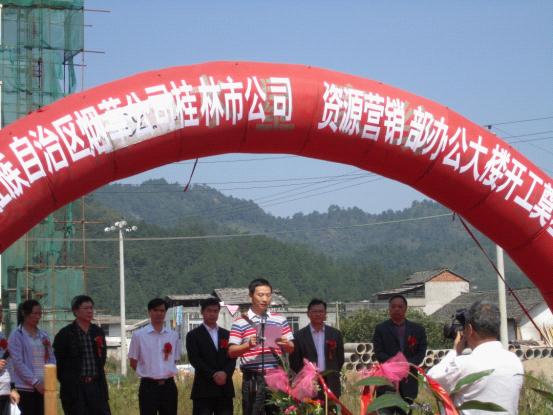 2011年10月18日,南寧品正承監(jiān)的桂林煙草資源縣營銷部經(jīng)營業(yè)務(wù)用房工程舉行隆重的開工儀式,資源縣領(lǐng)導(dǎo)及相關(guān)單位的負(fù)責(zé)人參加儀式。桂林分公司謝建明副經(jīng)理作為監(jiān)理方代表發(fā)言,并承諾努力為該工程建設(shè)提供優(yōu)質(zhì)的服務(wù)。開工儀式取得圓滿成功。